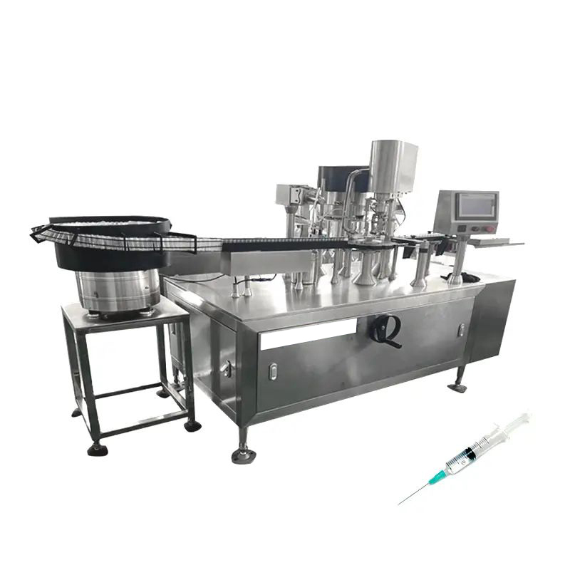 The whole machine adopts PLC program control, frequency converter frequency conversion speed regulation, the syringe by the mechanical hand clamping and filling and then automatically add cap. The machine runs stably and reliably, and it is the optimal model for the gel filling of the syringe.